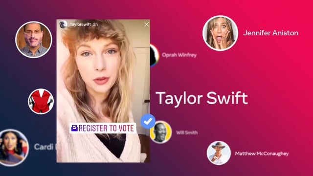 In June, Facebook set a goal to help 4 million people register to vote in the election. One week prior to the election, Facebook had already helped 4.4 million people register. The campaign delivered over 1 billion impressions to remind people to register and was featured in 40 articles, had 400 hits in local broadcast, and influencers garnered 1.25 million interactions on Instagram and 25.1 million interactions on Facebook.
